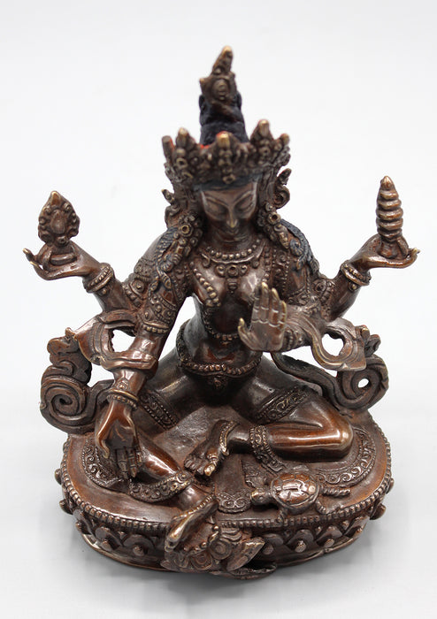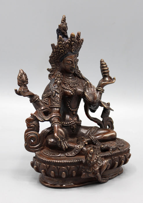 Copper Oxidized Hindu Goddess Laxmi Fine Carving Statue