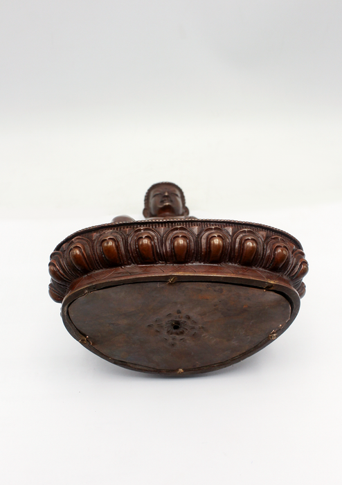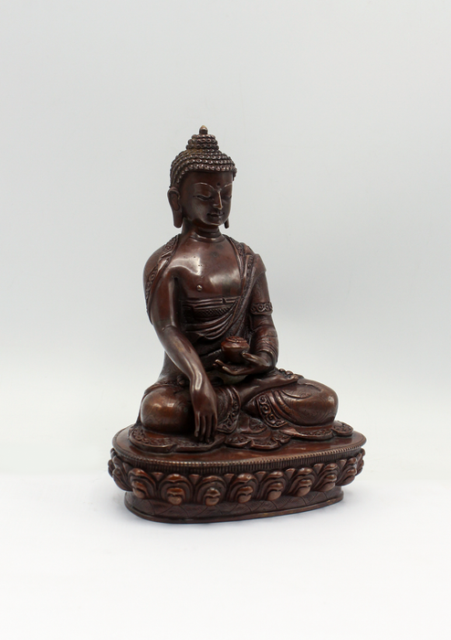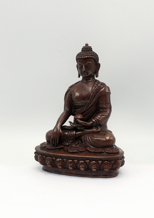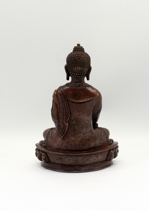 The Copper Oxidized Shakyamuni Buddha statue embodies the serenity and wisdom of the historical Buddha, with a rich patina that enhances its timeless appeal. This handcrafted piece captures the essence of Shakyamuni's teachings, symbolizing peace, enlightenment, and compassion. Perfect for any sacred space, it serves as a reminder of the path to inner tranquility and spiritual growth.