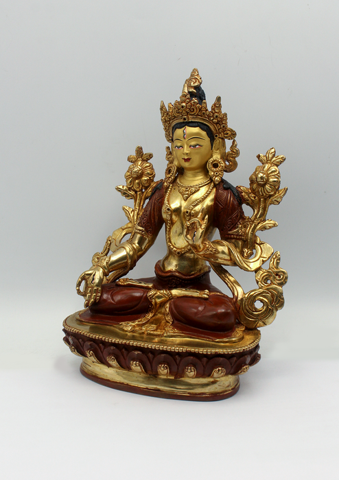 Copper Partly Gold Plated White Tara Statue 9"H