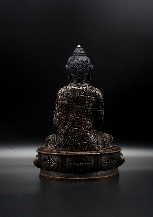 This Copper Shakyamuni Buddha Statue is a profound representation of wisdom, enlightenment, and inner peace. Seated in the Bhumisparsha Mudra, with one hand touching the earth, this pose symbolizes the moment of Buddha's awakening and his victory over ignorance.