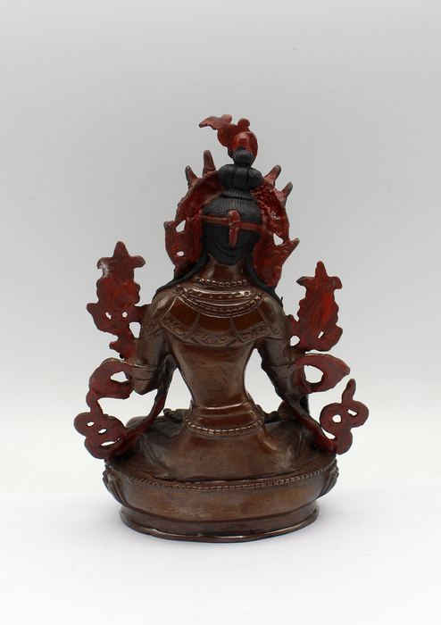 White Tara is typically depicted seated with a serene expression, holding a white lotus and displaying a gesture of generosity. Devotees turn to White Tara for blessings of health, long life, and protection, reciting mantras dedicated to her. She represents a source of healing and compassion, offering solace and guidance to those who seek her assistance in overcoming life's challenges and achieving spiritual well-being. White Tara statues serve as potent reminders of these qualities, serving as objects of devotion for practitioners on their path to enlightenment.