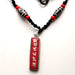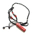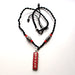 This is a white metal rectangular pendant which has coral inlays and Om Mani Padme Hum Mantra embossed in the center. Handcrafted in a traditional way in Kathmandu, Nepal, this pendant features a durable woven nylon thread with two dzi bead spacers.