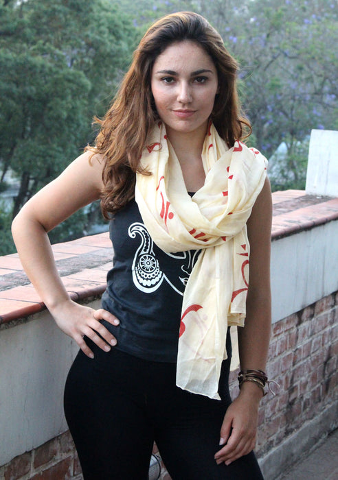 This cream cotton shawl is the best accessory for this summer. The shawl is made of pure cotton. Big Om letters are printed over the shawl which gives it a unique and extravagant look. Great for beach walks, can be used as a swim suit cover up, wrap it as a bandana or wrap it around the neck, shoulder to carry off like a shawl in the summers.