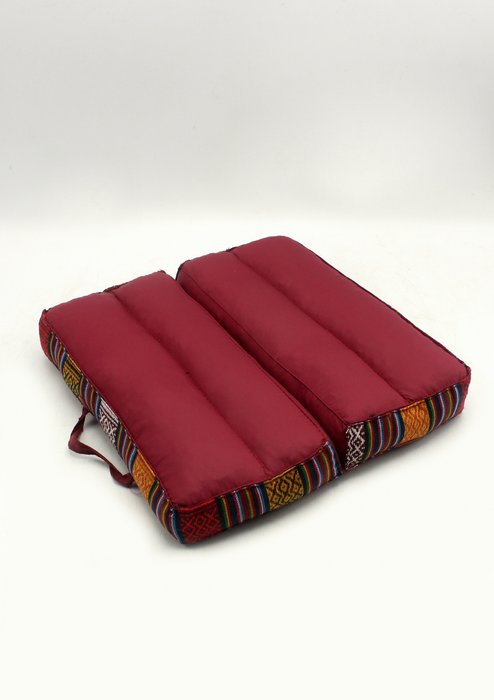 This medium sized meditation cushion is fold-able meditation cushions . This is designed in square shape and are fold-able in between and is fairly stuffed with cotton making them just comforting enough to support you.