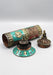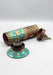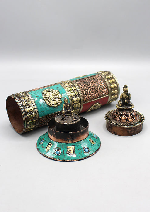 Cylindrical Turquoise and Coral inlaid Copper Incense Holder
