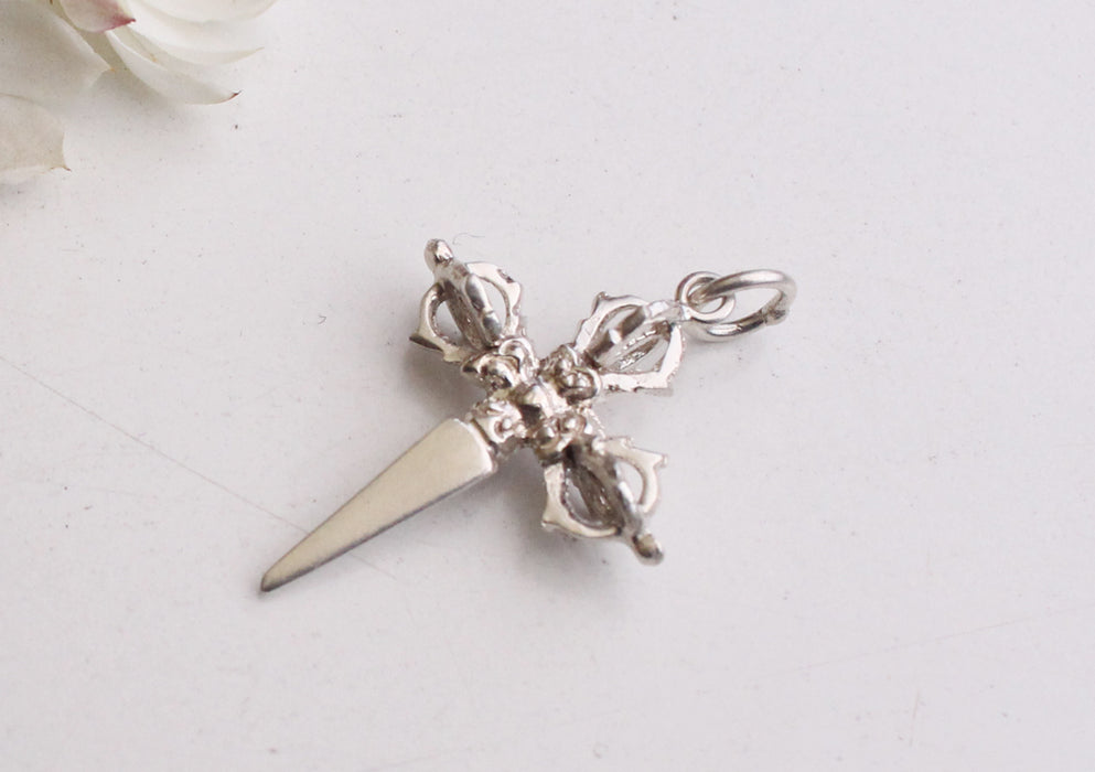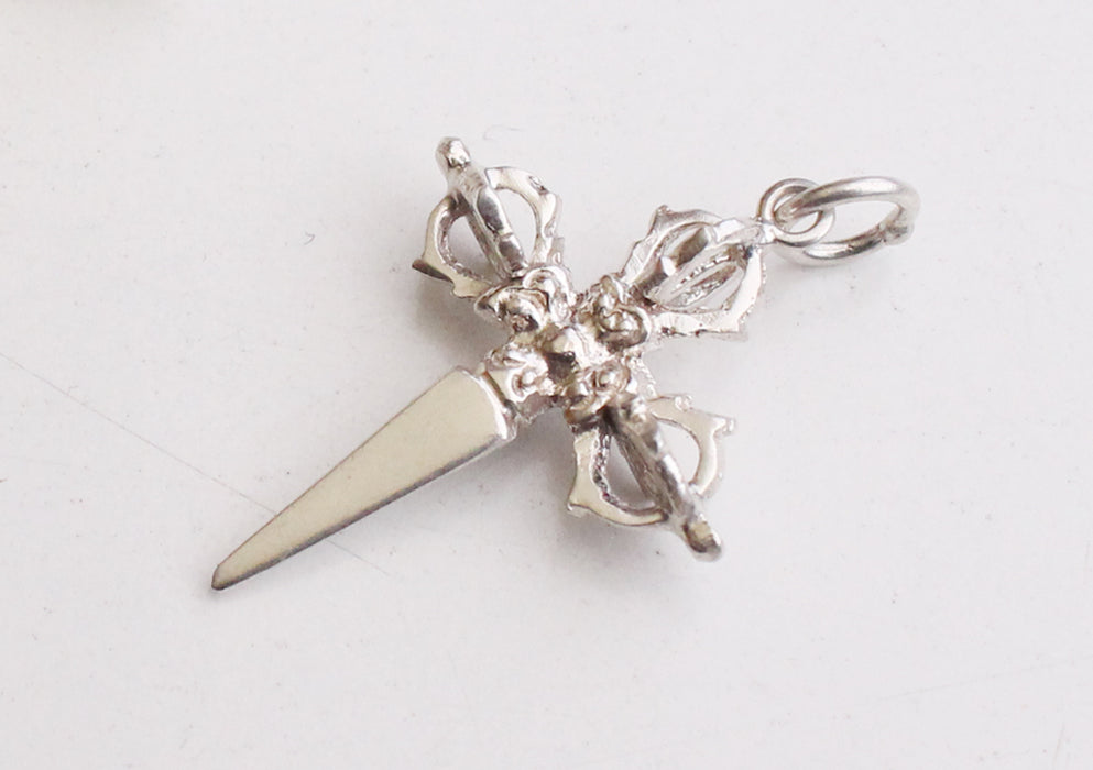 This is a handmade silver sterling Double Dorjee Phurba Pendant from Nepal. This pendant is beautifully carved with giving each details perfectly.