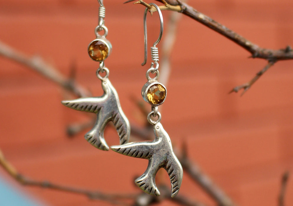 Dove Peace Bird Citrine Inlaid Silver Earrings
