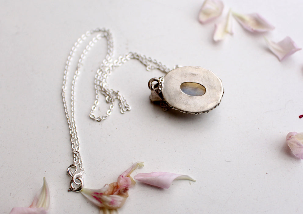This is a charming 925 silver sterling pendant handmade in Nepal. This pendant has moonstone which is in Blue color that looks elegant.