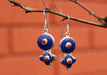 This earrings is made of silver and finely hand carved in Nepal. The silver earrings is beautifully made and presented. The earrings is shaped into a beautiful flower drop design with inlaid Lapis and coral.