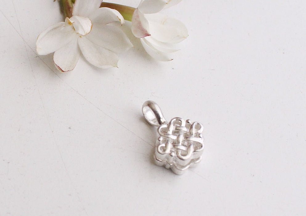 This beautiful silver sterling mala counter is handmade in Nepal. The artist has wonderfully carved Endless Knot by giving each details perfectly.