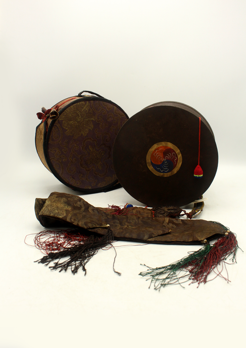 Note: This Damaru comes with Red and Yellow brocade cover/ Dark brocade cover