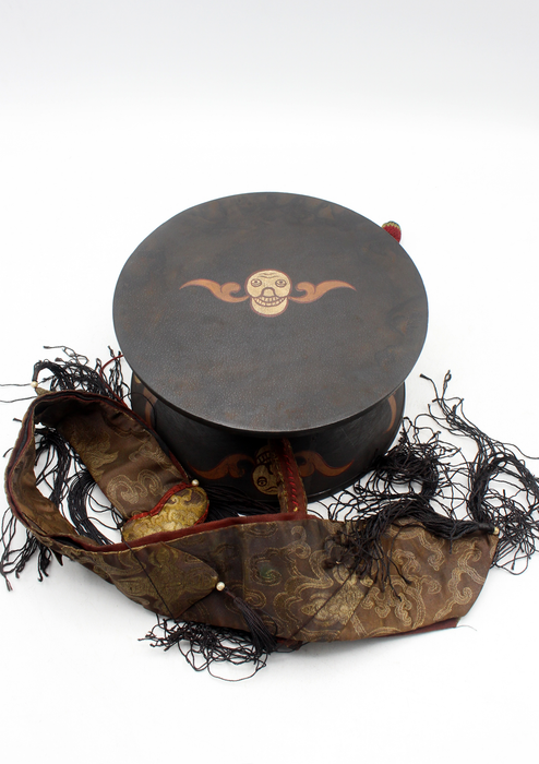 The Chod Drum Damaru is the very central instrument of Chod, a ritual Tibetan practice. The word Chod literally means "cutting through". It cuts through various hindrances and obstacles normally done through means of powerful rituals. It becomes a channel that links us to the essential source, which is beyond even name and form. The Chod Damaru is a very unique instrument that has symbolic meaning to each of the parts that it contains.