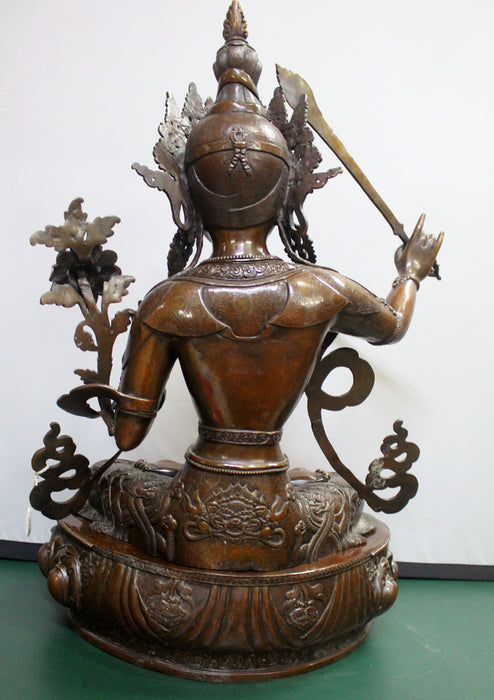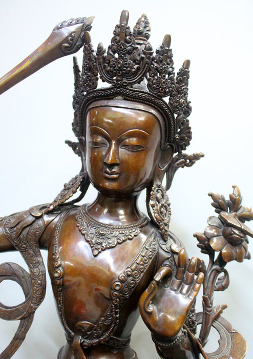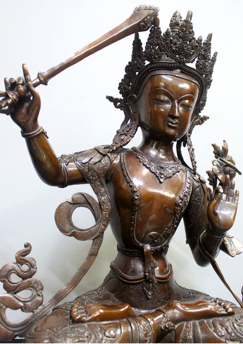 Expressive 25"High Handcarved Copper Manjushree Statue