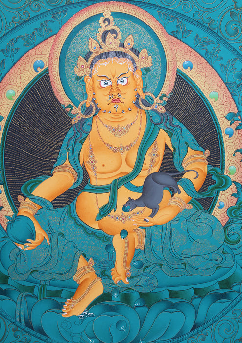 Exquisite Zambala Kubera Painted Tibetan Thangka