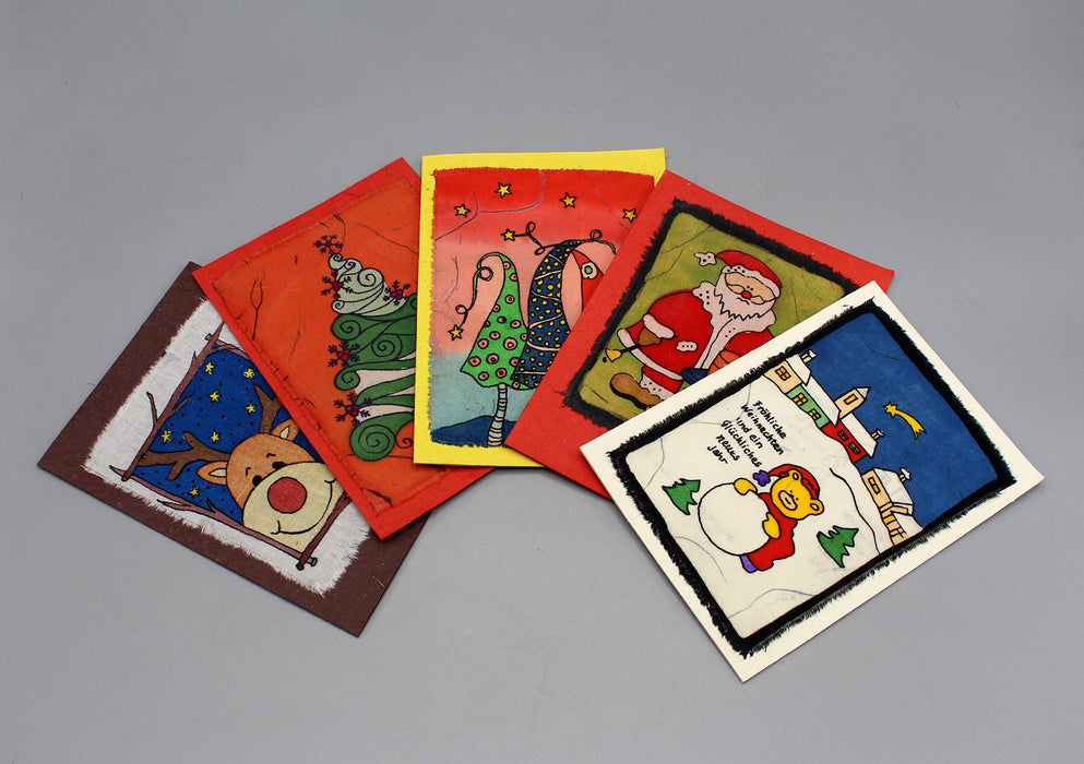 These cards are made by artisans who have had leprosy, polio or are disabled. Our fair trade associate found the artists and offered to treat them. After they were cured, they were trained to work independently so that they could survive in our society independently. We work closely with them to market their products and also help them financially and in every other way to help them elevate their lifestyle and status.