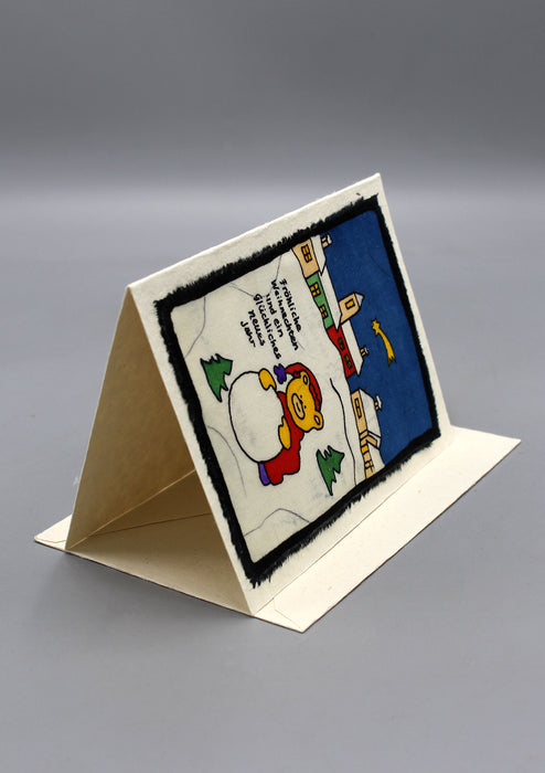 Fair Trade Batik Teddy Bear Playing with Snow BeerGreetings Card