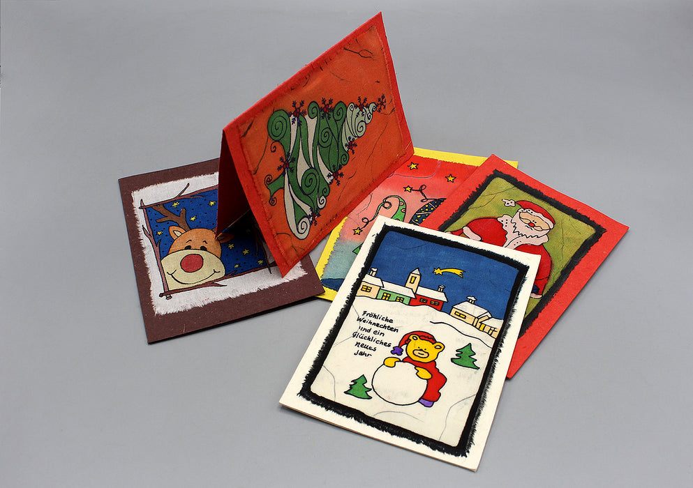 These cards are made by artisans who have had leprosy, polio or are disabled. Our fair trade associate found the artists and offered to treat them. After they were cured, they were trained to work independently so that they could survive in our society independently. We work closely with them to market their products and also help them financially and in every other way to help them elevate their lifestyle and status.