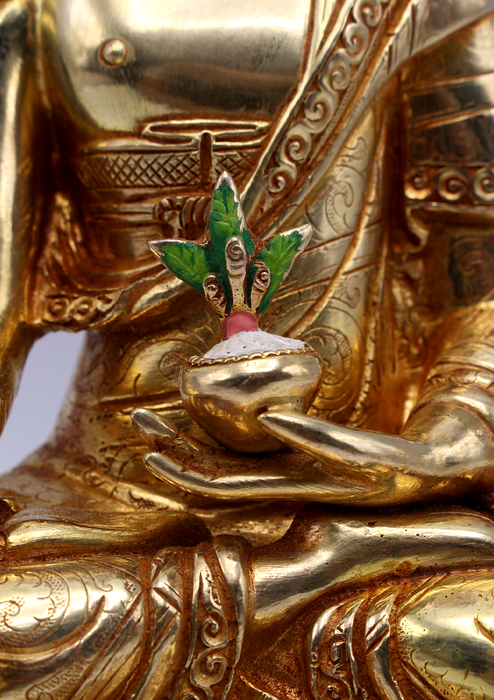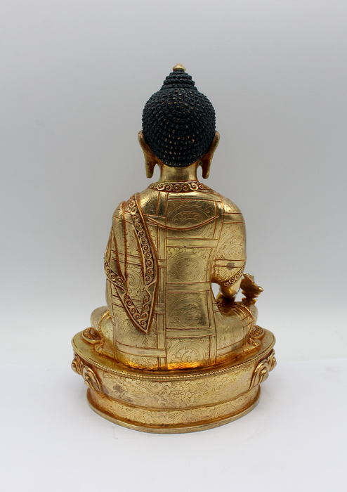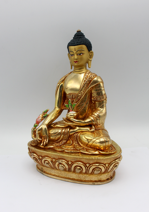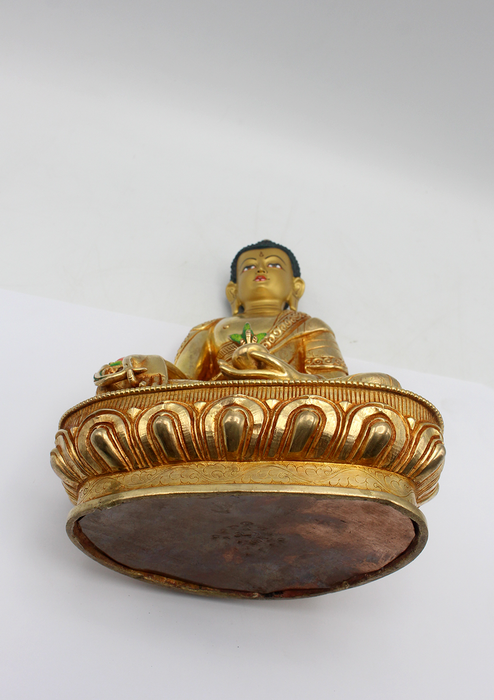 Crafted with meticulous attention to detail, this Medicine Buddha statue is a masterpiece of craftsmanship and spirituality. It is generously adorned with a lustrous layer of gold plating, infusing it with an aura of opulence and spiritual significance.