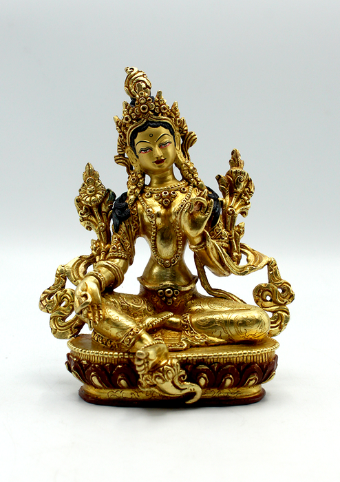Full Gold Plated Copper Green Tara Statue