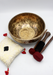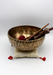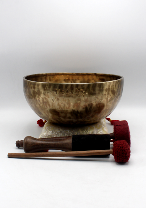 This singing bowl comes with a set of two drum sticks, suede mallet, and a cushion.