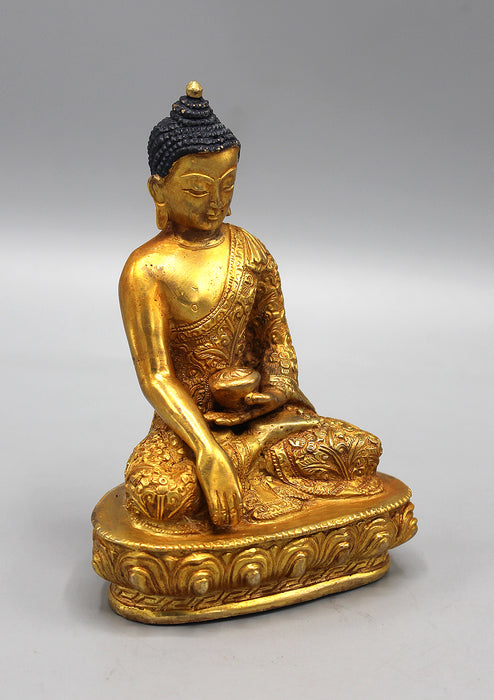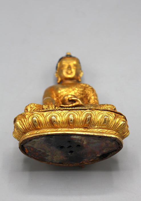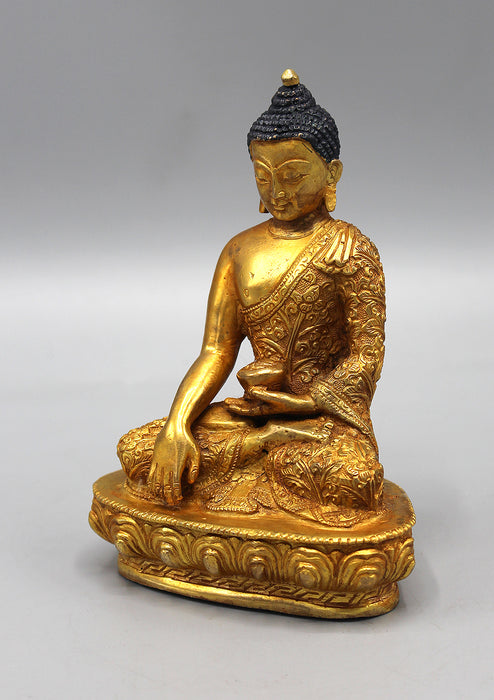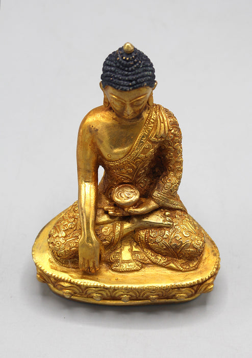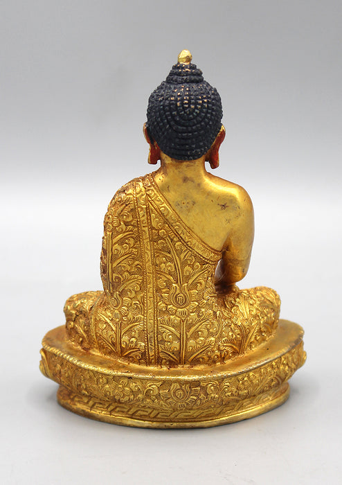 A simple yet elegant fully gold plated copper statue of Shakyamuni Buddha. The statue is 5.2 inch high.
