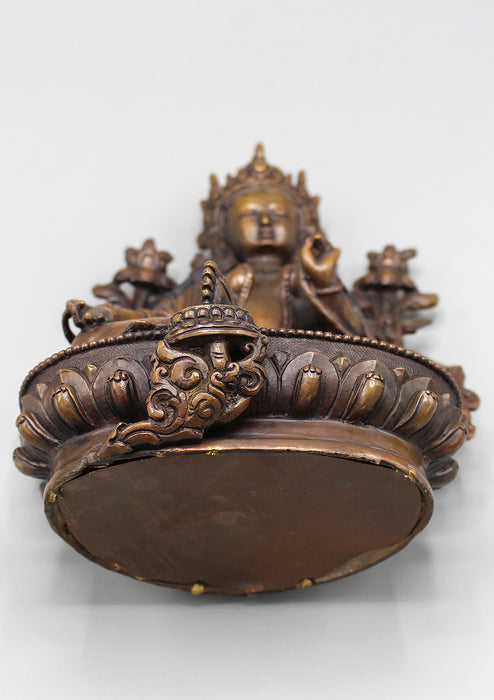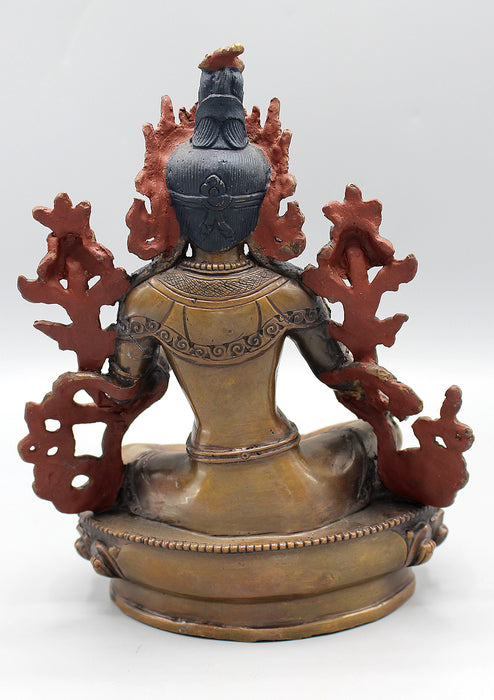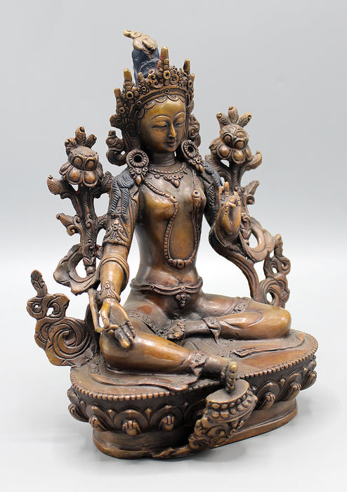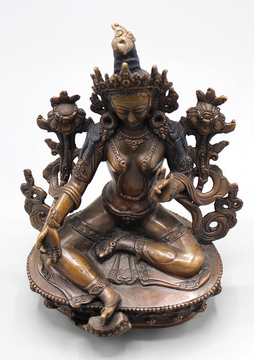 This is a fully oxidized beautiful statue of Green Tara seated on a Lotus. Being made by a fourth generation sculptor, the work is very profound and beautiful.