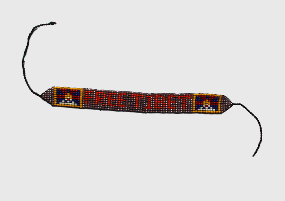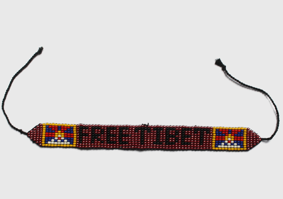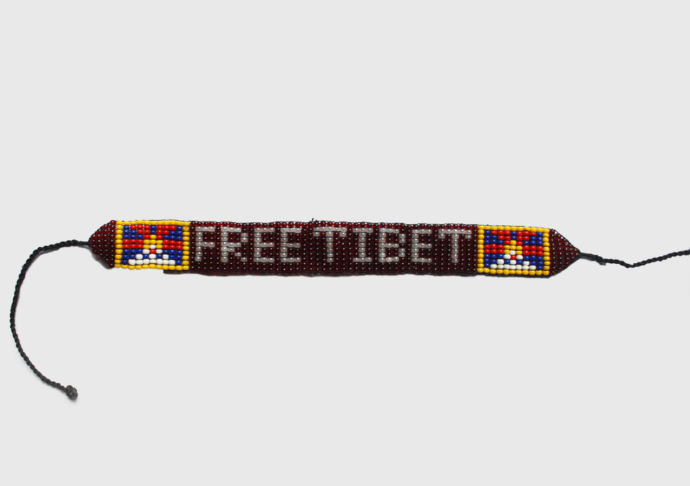This is a glass beads bracelet handmade in Nepal. The colorful glass beads are wonderfully organize to give it a beautiful pattern. The multi color glass beads is used to make a word Free Tibet and Tibet flag.