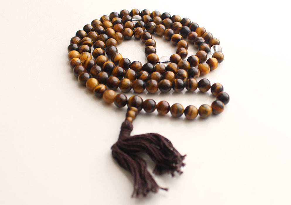 Glossy Tigers Eye Stone Buddhist 108 Prayer Beads Necklace with Spacer