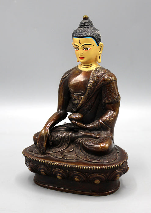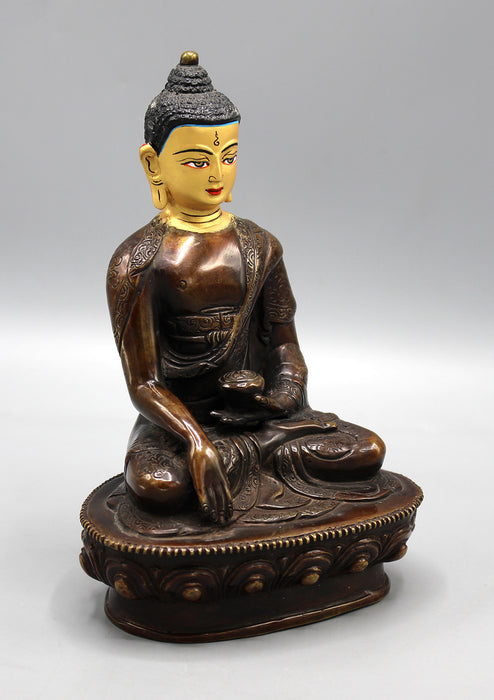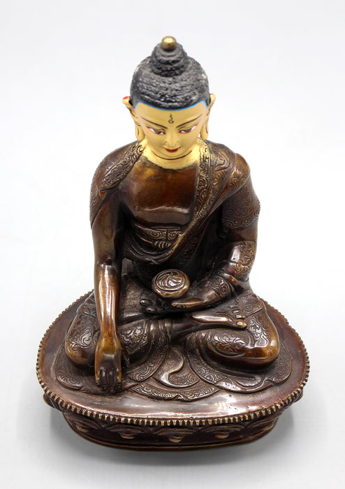 Gold Face Painted Copper Oxidized Shakyamuni Buddha Statue
