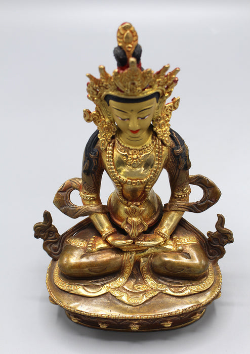 Gold Plated Aparmita Buddha Statue 8 Inch