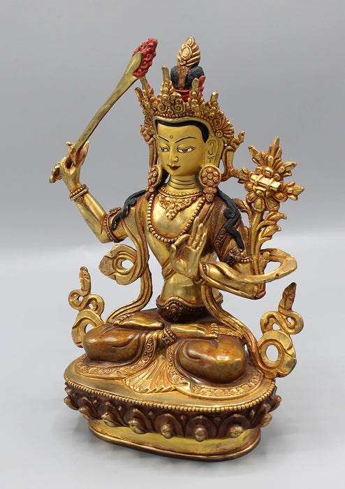 Gold Plated Bodhisattva Manjushri Statue 8 Inch High