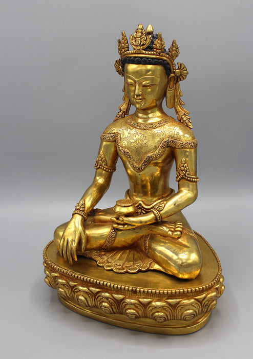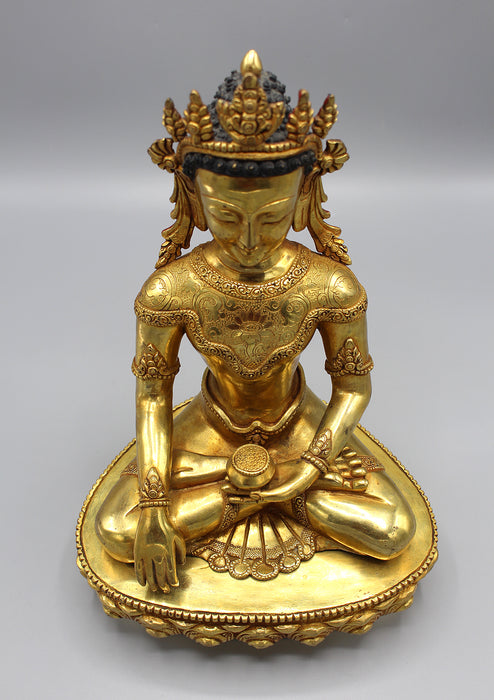 Gold Plated Crowned Shakyamuni Buddha Statue