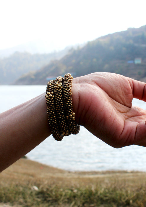 This is a very beautiful and stylish roll on glass beads bracelet handmade in Nepal. Made with the finest quality Czech and Japanese beads, the bracelet stretches as you roll it over your wrist. It fits most wrists as it is adjustable and will roll over around your wrist.