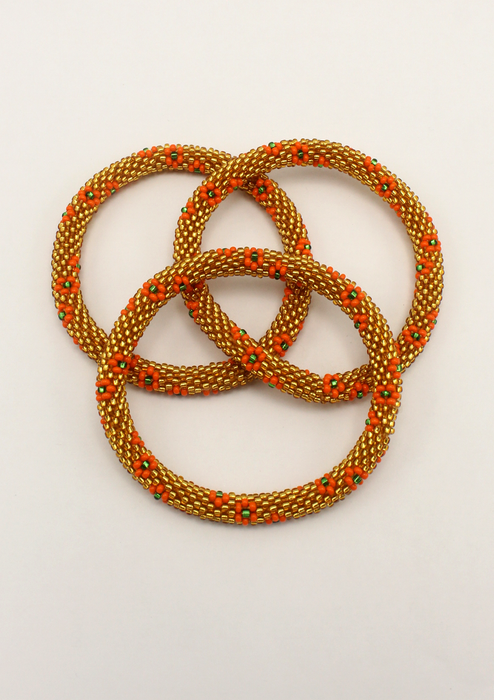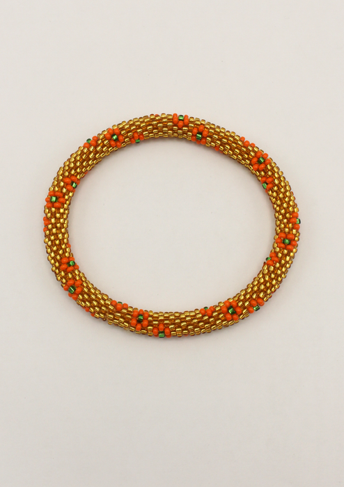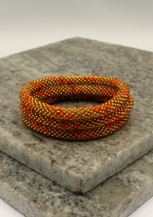 These fairly traded glass beads bracelet are meticulously crocheted by our women artists. Our woman artist carefully hand-strung these Roll On bracelet to give them the best shape and design.