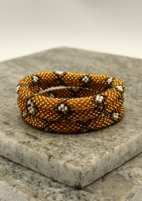 Made with the finest quality Czech and Japanese beads, the bracelet stretches as you roll it over your wrist. It fits most wrists as it is adjustable and will roll over around your wrist.