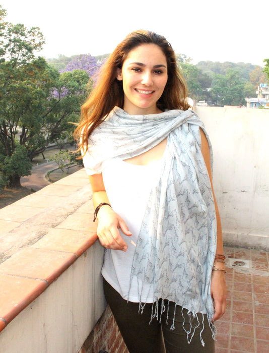 This elegant and soft cotton shawl is printed with Giraffe print. The gray shawl is printed with black giraffes all over. This shawl is very soft, light and is great for the summer.