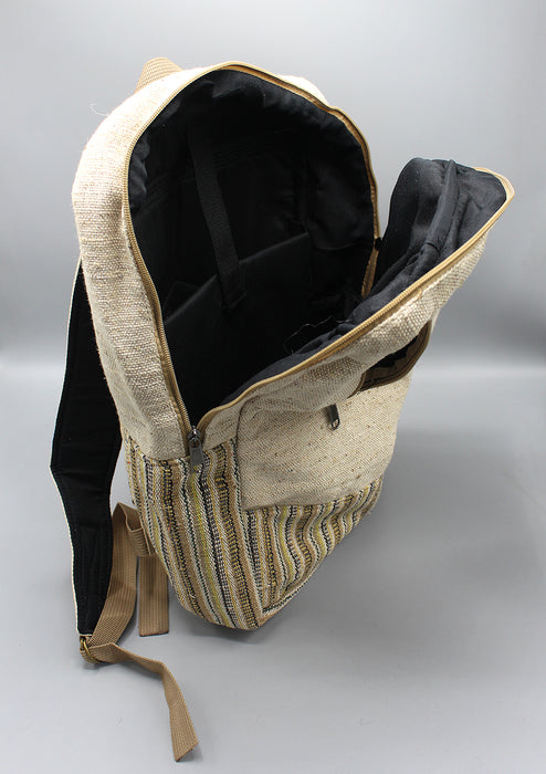 Green and Blue Lining Handmade Eco Friendly Hemp Backpack with Laptop Sleeve