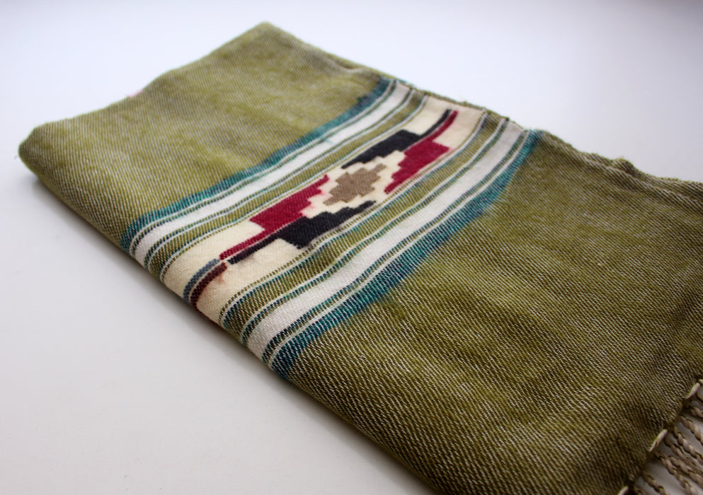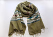 Green Border Butterfly Pattern Olive Green Handloomed Yak Wool Shawl