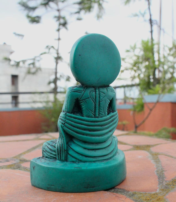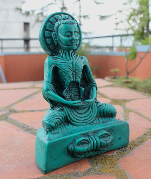 Green Turquoise Toned Emaciated Meditating Buddha Resin Statue RST014GR
