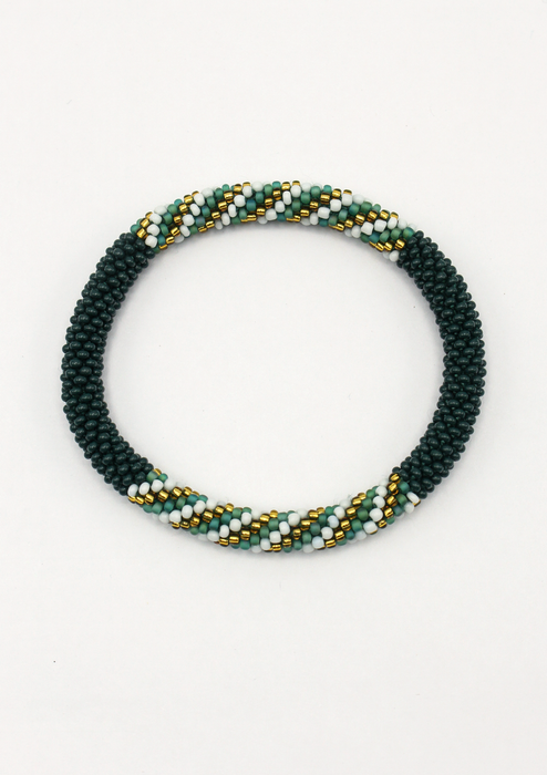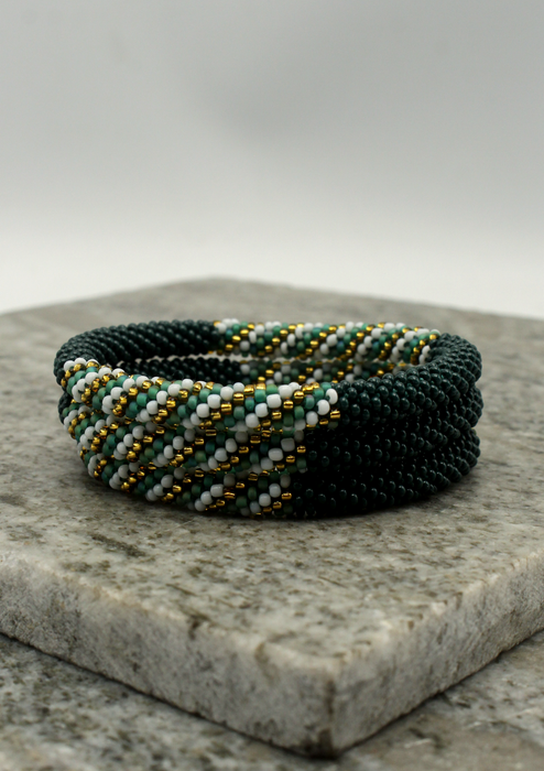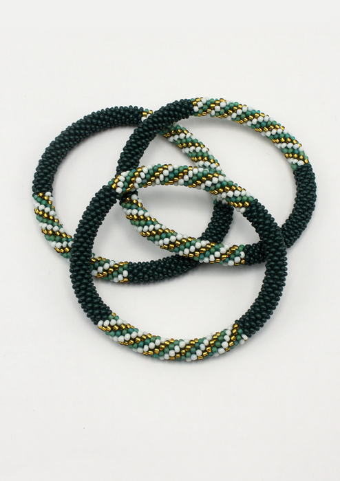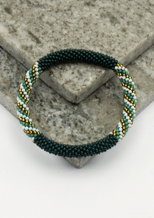 These fairly traded glass beads bracelet are meticulously crocheted by our women artists. Our woman artist carefully hand-strung these Roll On bracelet to give them the best shape and design.