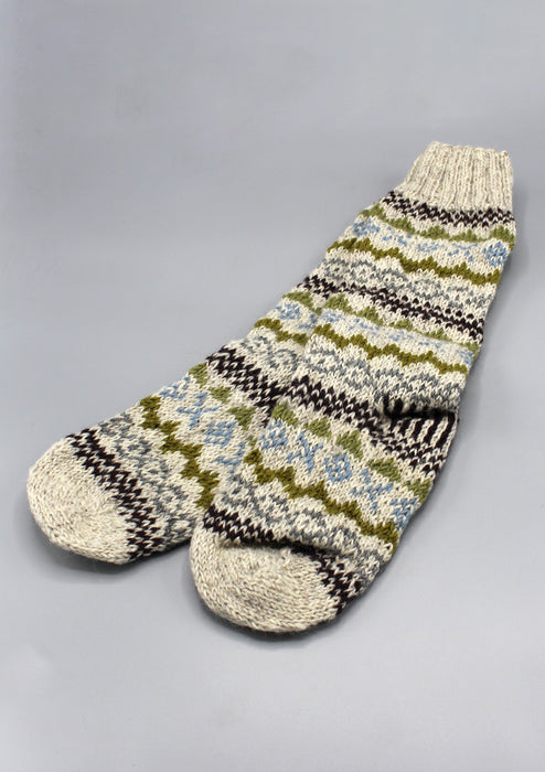 This Woolen Socks is knitted by the Nepalese Women using the sheep wool from New Zealand. We use Eco-friendly Swiss Technology CLARIANT Color Dying process. This product is in free size and has become a fashion wear which is comfortable to wear and keeps you warm.