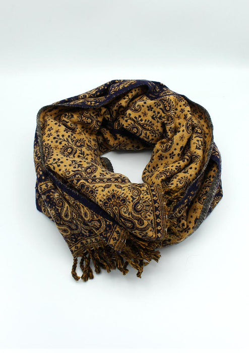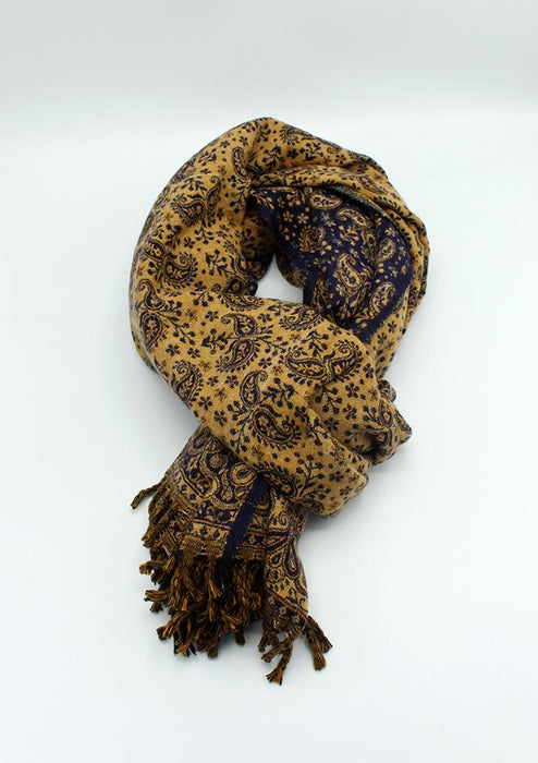 Hand Loomed Floral Dark Blue Print Yak Wool Shawl (Dark Blue)