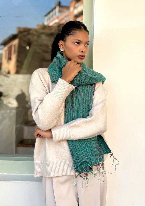 Hand loomed Green Striped Yak Wool Shawl Nepal