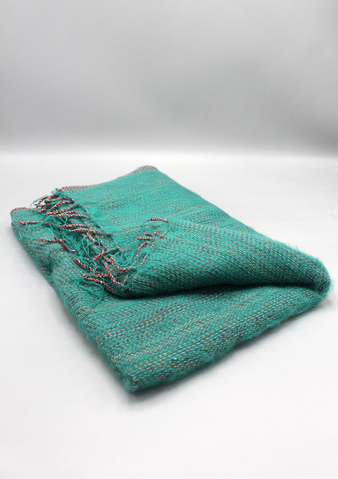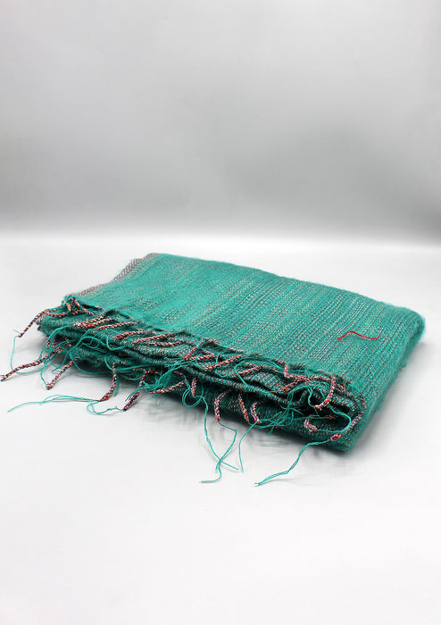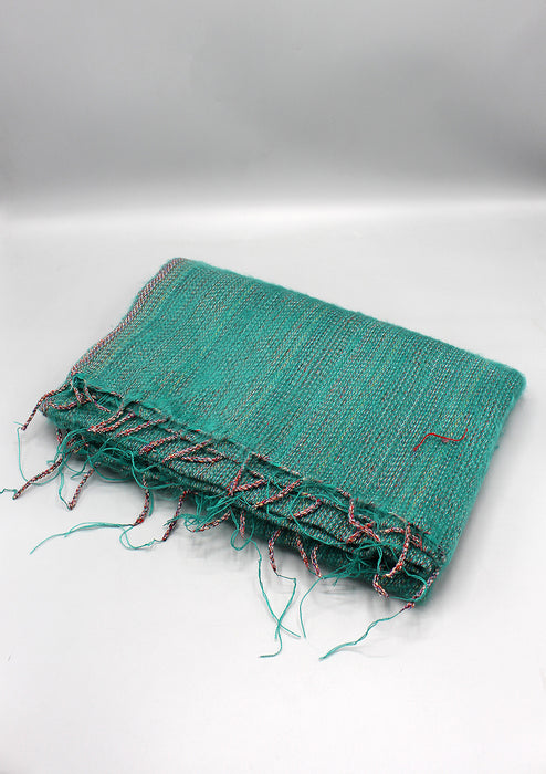 This is a beautifully hand weaved Yak Wool shawl from Nepal. The shawl is in Plain Green color and there is a small red lining all over the shawl. This shawl is soft and luxurious to touch and wear as wrap, throw or a shawl. The yak wool is the brand name.