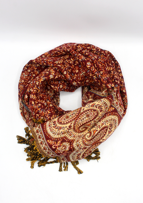 Hand loomed Mini Paisley Red Woolen Shawl