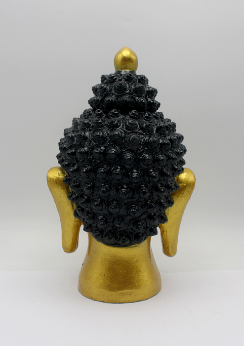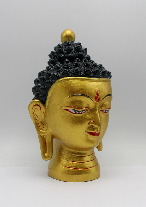 This is a beautiful hand painted large Buddha head. The face of the Buddha is painted with golden color. A beautiful gleaming gold-glazed piece that has been delicately carved. This statue can be placed at your living room as a home decor. This Buddha head is made of clay.