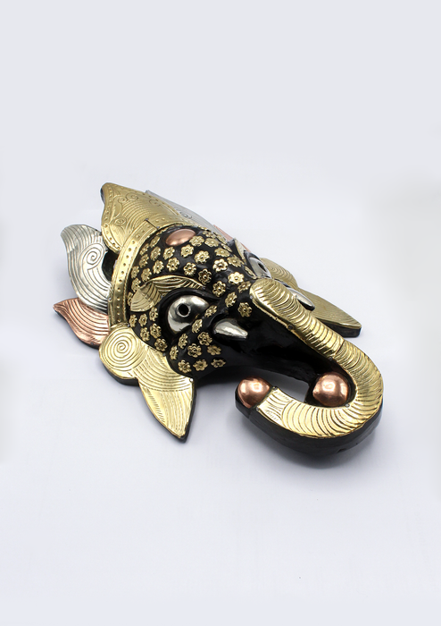 Lord Ganesha, the revered remover of obstacles and harbinger of new beginnings, is beautifully depicted in this mask. His divine presence symbolizes wisdom, prosperity, and auspiciousness, making this piece a powerful spiritual artifact.