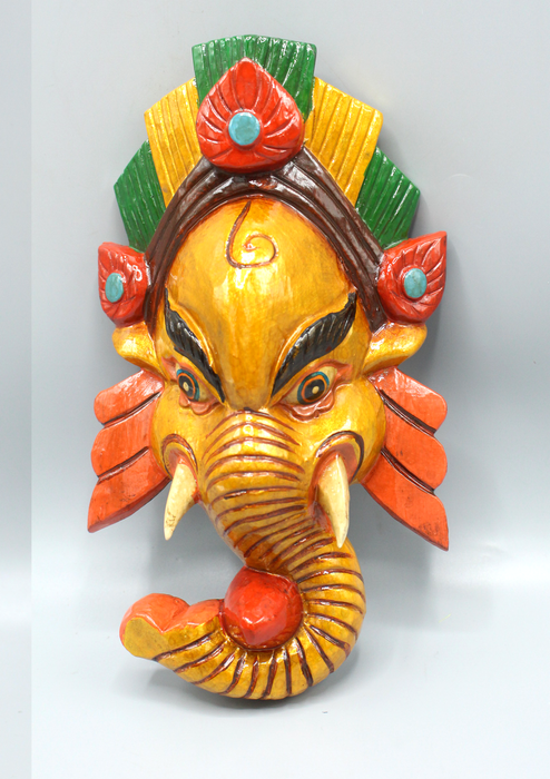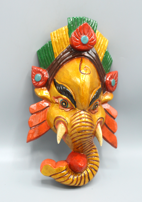 This is a beautiful mask of Lord Ganesha Handmade by one of our master artisan from Changu Narayan. The mask is beautifully hand carved and painted in a beautiful Golden color by our artisan with precision and focus on detail. Ganesha is worshiped prior to any god or goddess or starting any new work by Hindu worshipers. Ganesha is the symbolism of enlightenment.