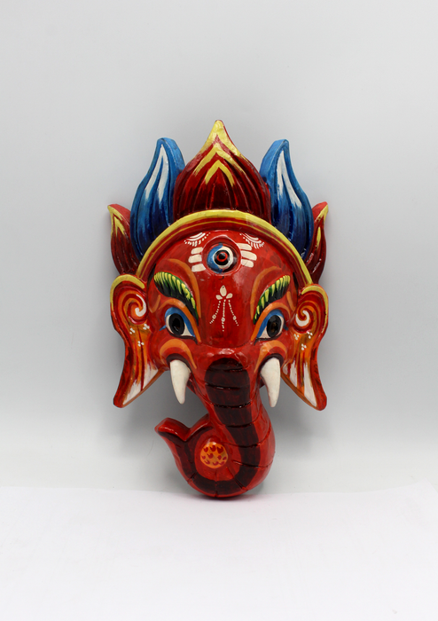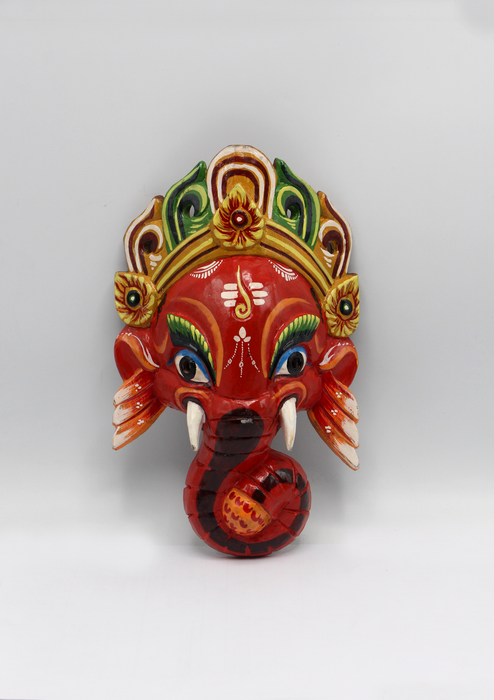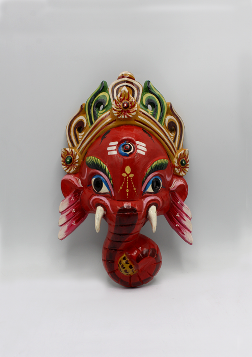 Lord Ganesha, revered as the harbinger of new beginnings in Hindu culture, graces this mask with his presence. His worship precedes all other deities and ventures, symbolizing enlightenment and auspiciousness.