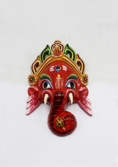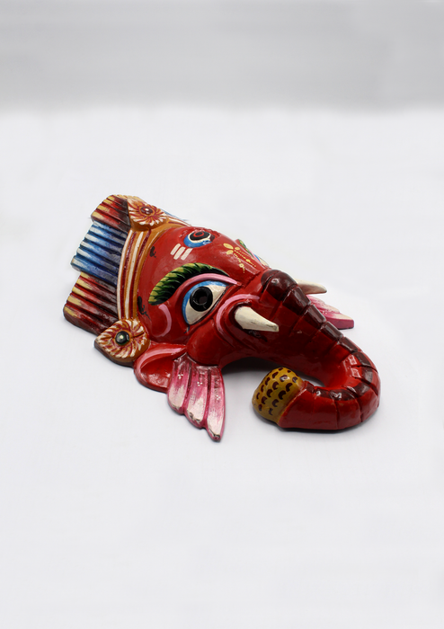 Hand Painted Ganesh Wall Hanging Mask - Red